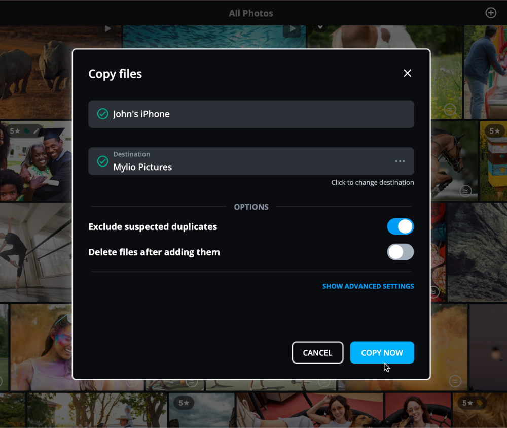 Click Copy Now to copy the folder to your Mylio Photos Library.