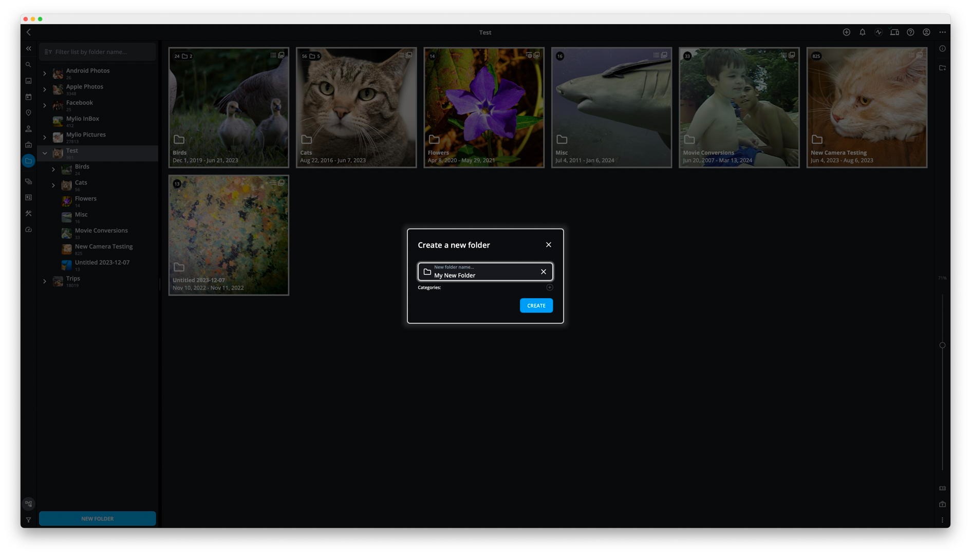 Using the folder tree, select the folder where you’d like to place a subfolder, then click the New Folder button.