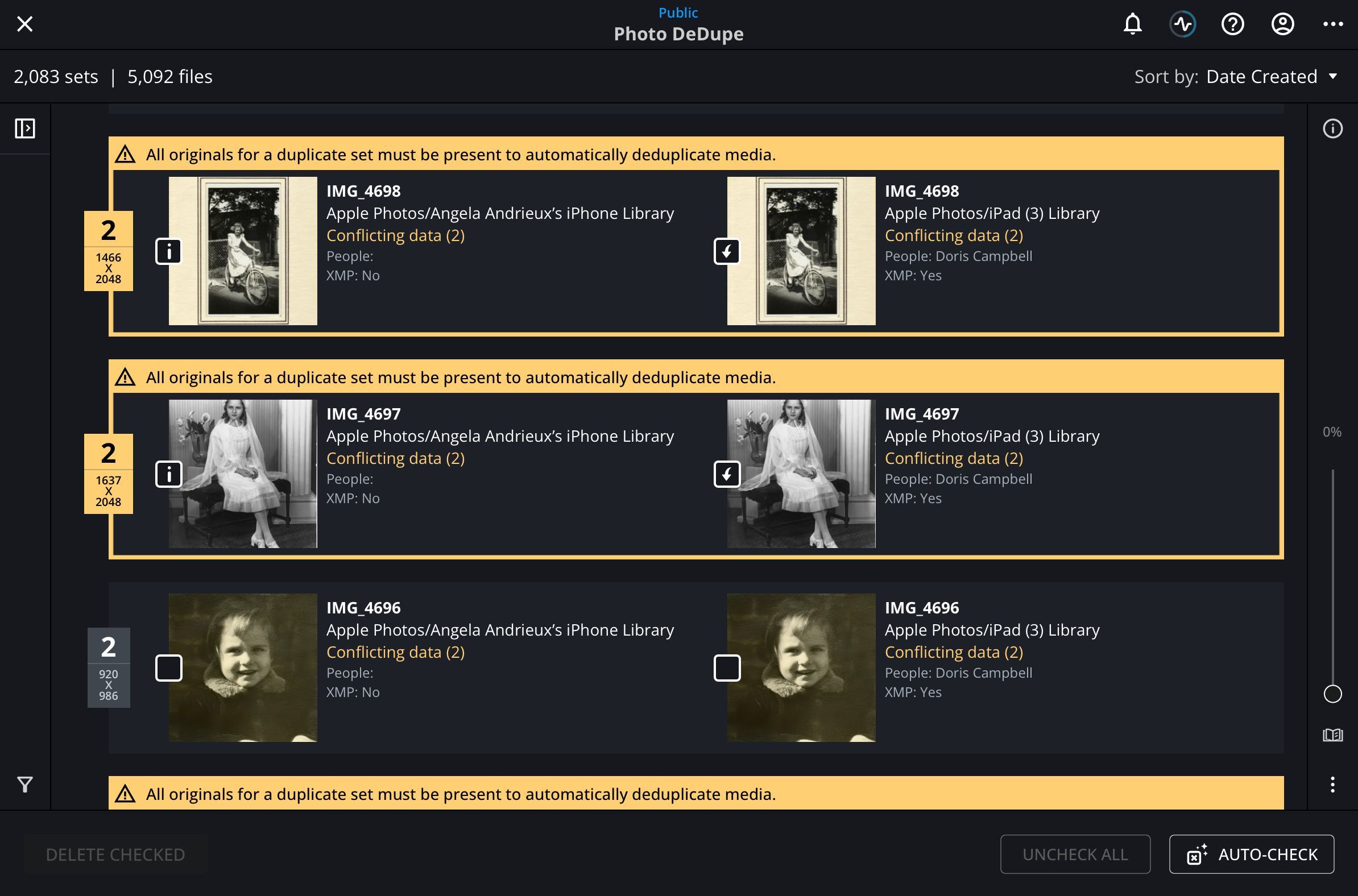 Error Message: All originals for a duplicate set must be present to automatically deduplicate media