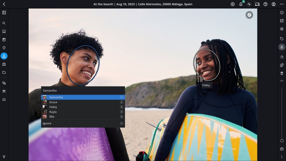 If a face is tagged with an incorrect name, click or tap on the face, locate the correct name from the list, or type in a new name.