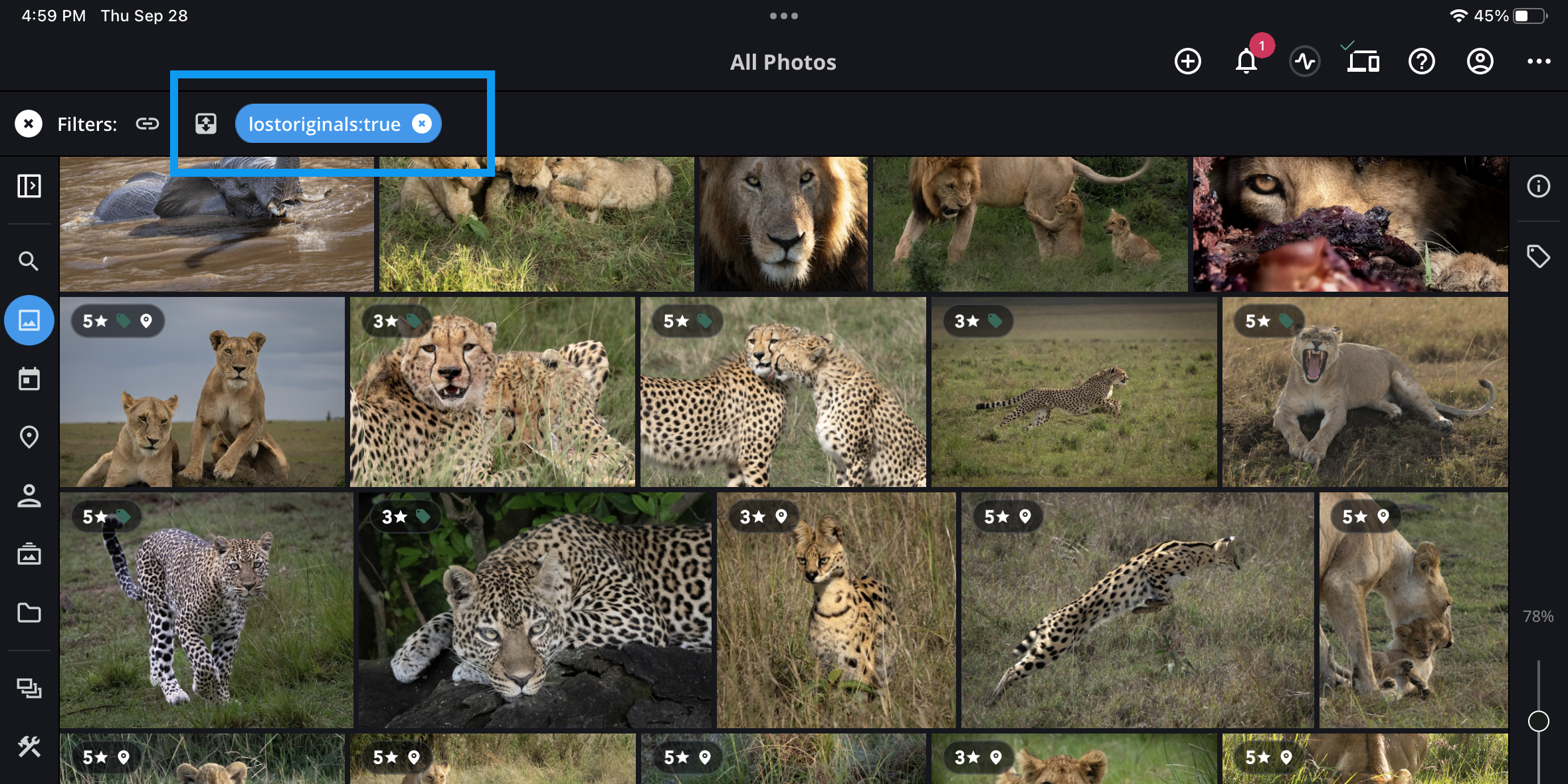 Click on Lost Originals to see all files deleted in the file system before they were fully synced with Mylio Photos.