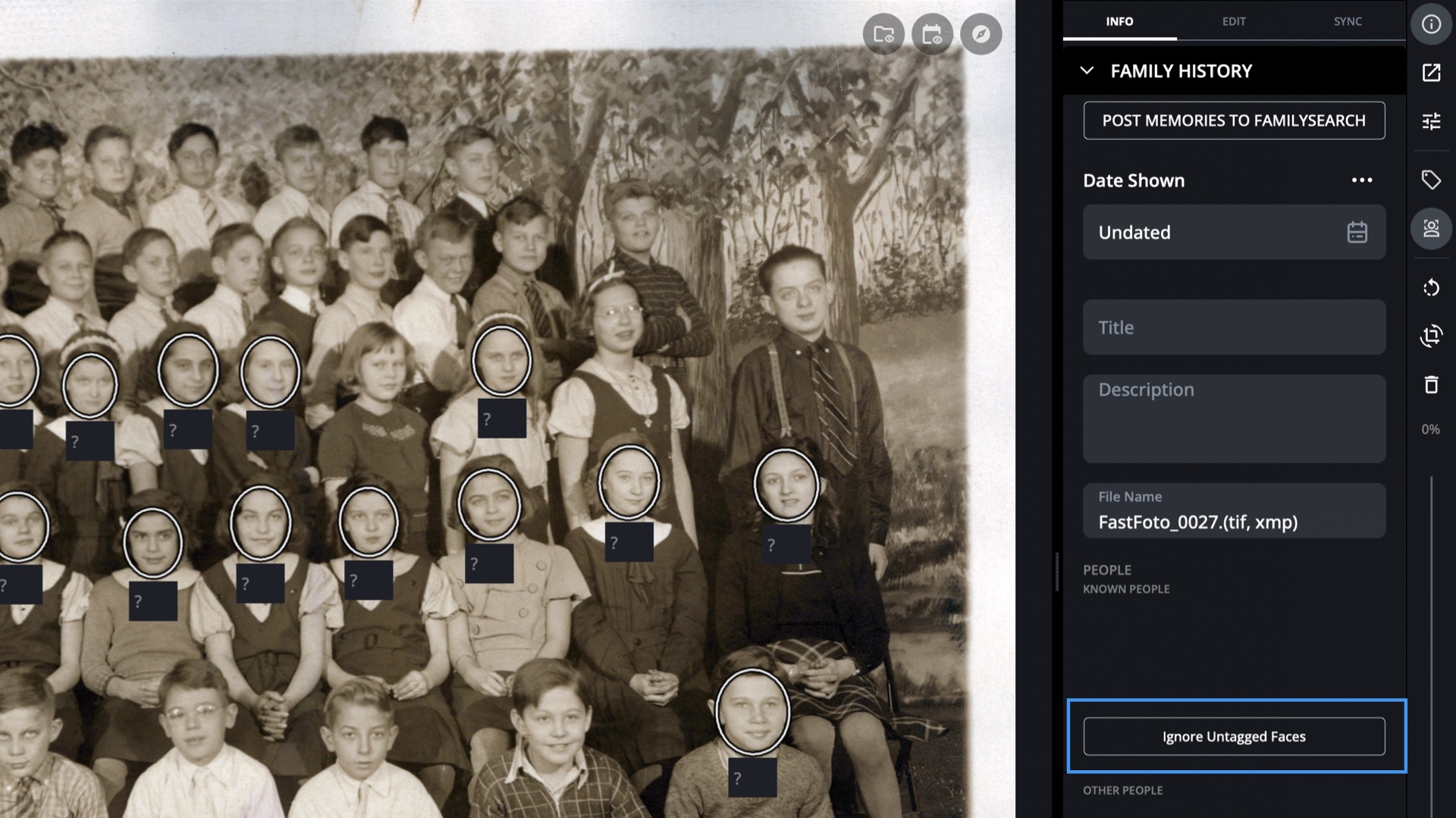 3. To ignore the remaining face tags, click the info icon to access the Info Panel.