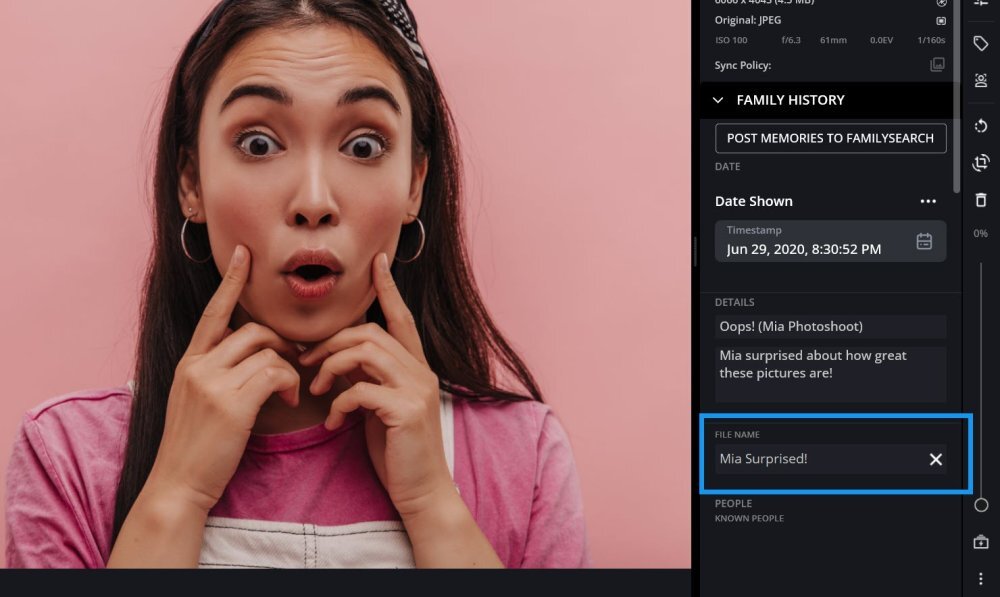Learn More: https://manual.mylio.com/topic/rename-files-folders