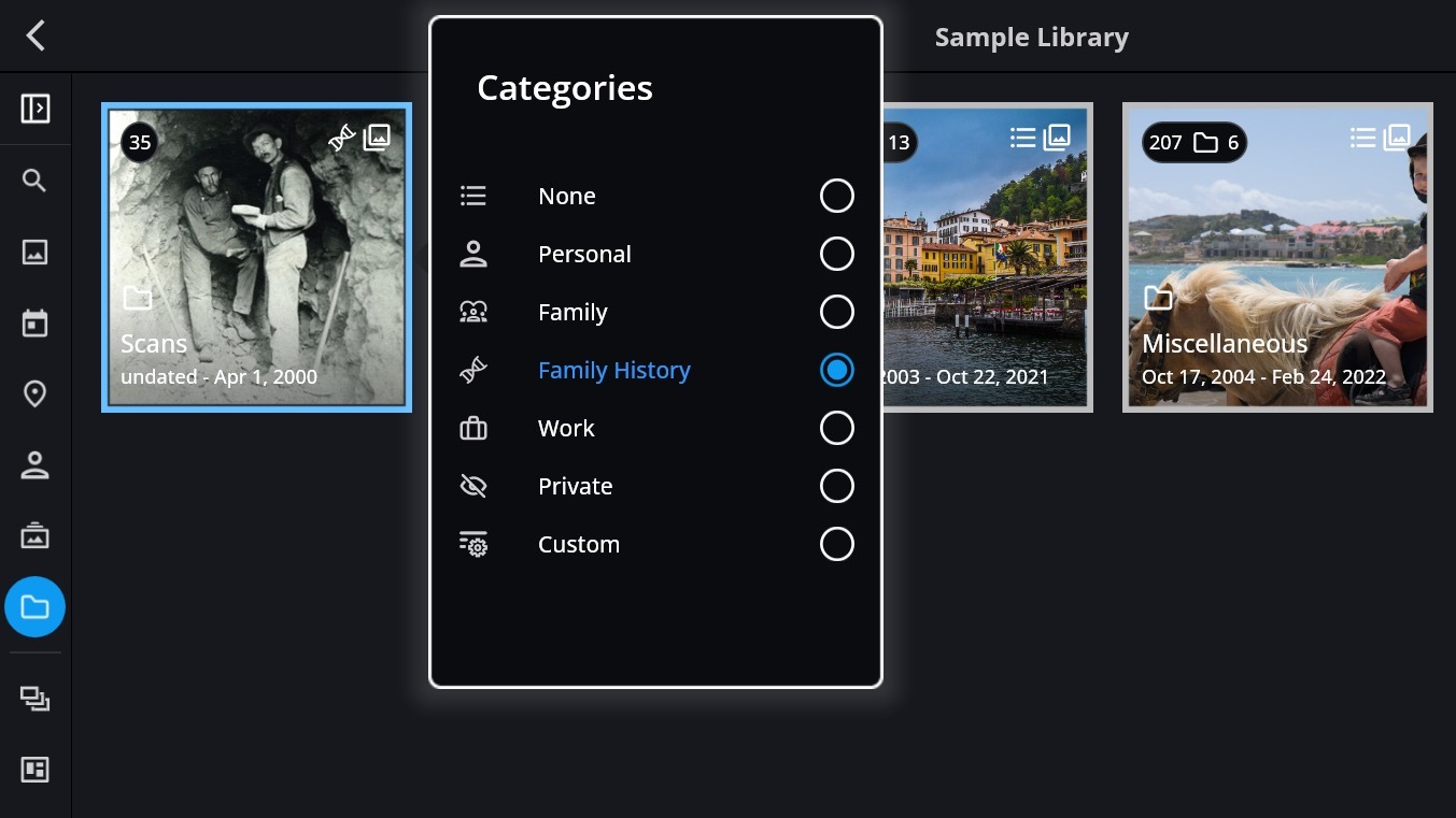 Tap-to-Categorize is the fastest way to categorize Folders, Albums, & People, allowing you to assign a primary category for each container.