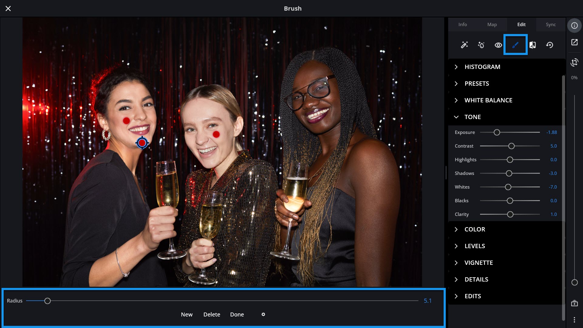 When you’re finished adding local adjustments, click Done at the bottom of the screen.